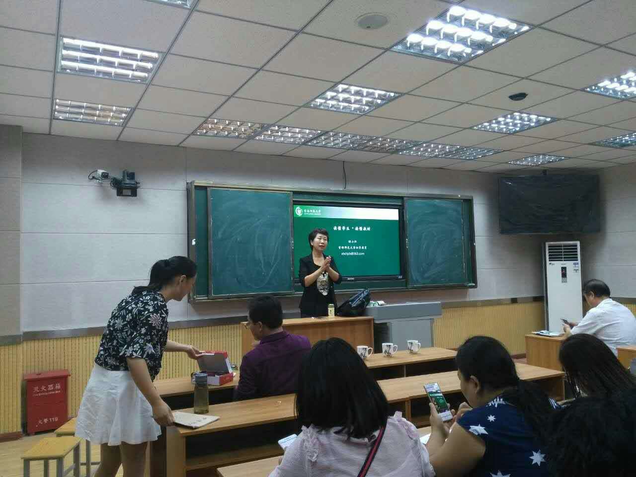 下午两点钟,程教授作了题为《读懂学生 读懂教材》的专题讲座,她从课堂三要素、读懂学生、读懂教材、课堂怎样教这四个方面作了深入浅出的讲解,并且理论联系实际,通过具体典型的案例来说明读懂学生和读懂教材的重要性。程教授的讲座内容丰富,讲解生动有趣,既有理论高度,又提出了许多可供实践的见解和经验,让与会老师耳目一新,受益匪浅。
