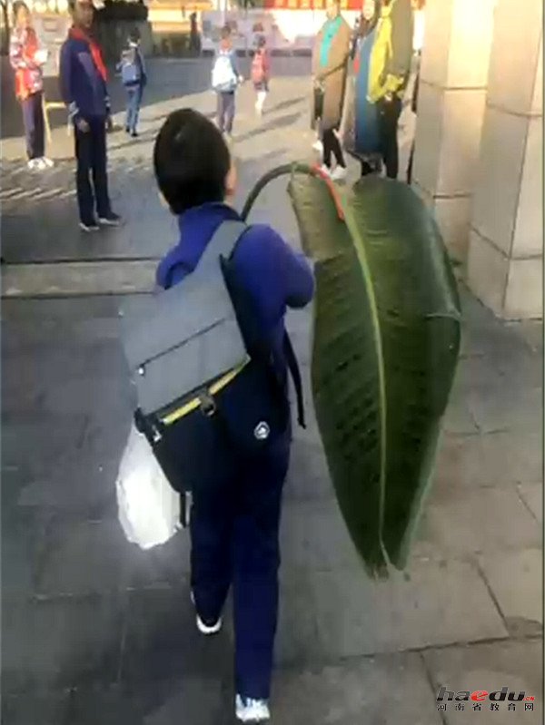 萌娃扛着芭蕉叶交作业,被称“芭蕉小王子”