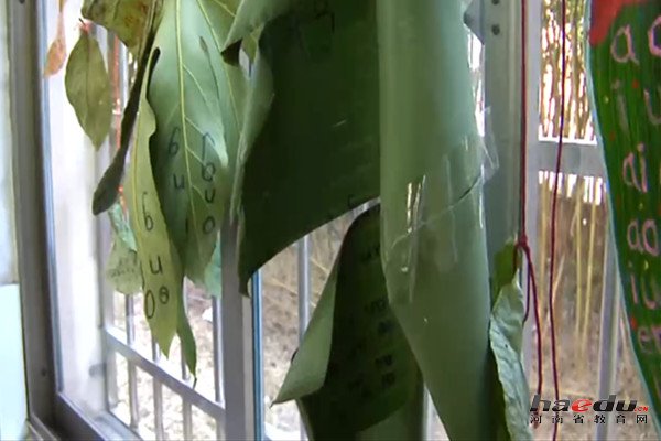 钱嘉浩的父亲说:“我想他写树叶上,肯定要写很多的,声母韵母写在树叶上要写很多的,我就找到一个芭蕉叶,给他带回去。我刚带回去,他马上想到了西游记里面的芭蕉扇,铁扇公主的芭蕉扇。”