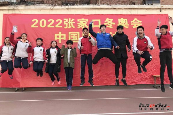 起跳拍照并签名为中国队加油