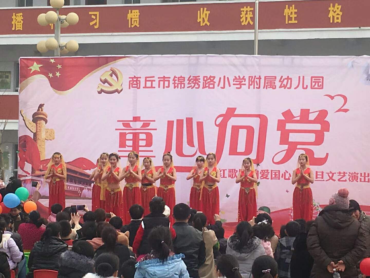 为迎接2018年元旦的到来,进一步展现广大师生积极向上、团结奋进的精神面貌,12月29日下午,商丘市梁园区锦绣路小学举行了红歌唱响爱国心庆元旦文艺汇演活动。
